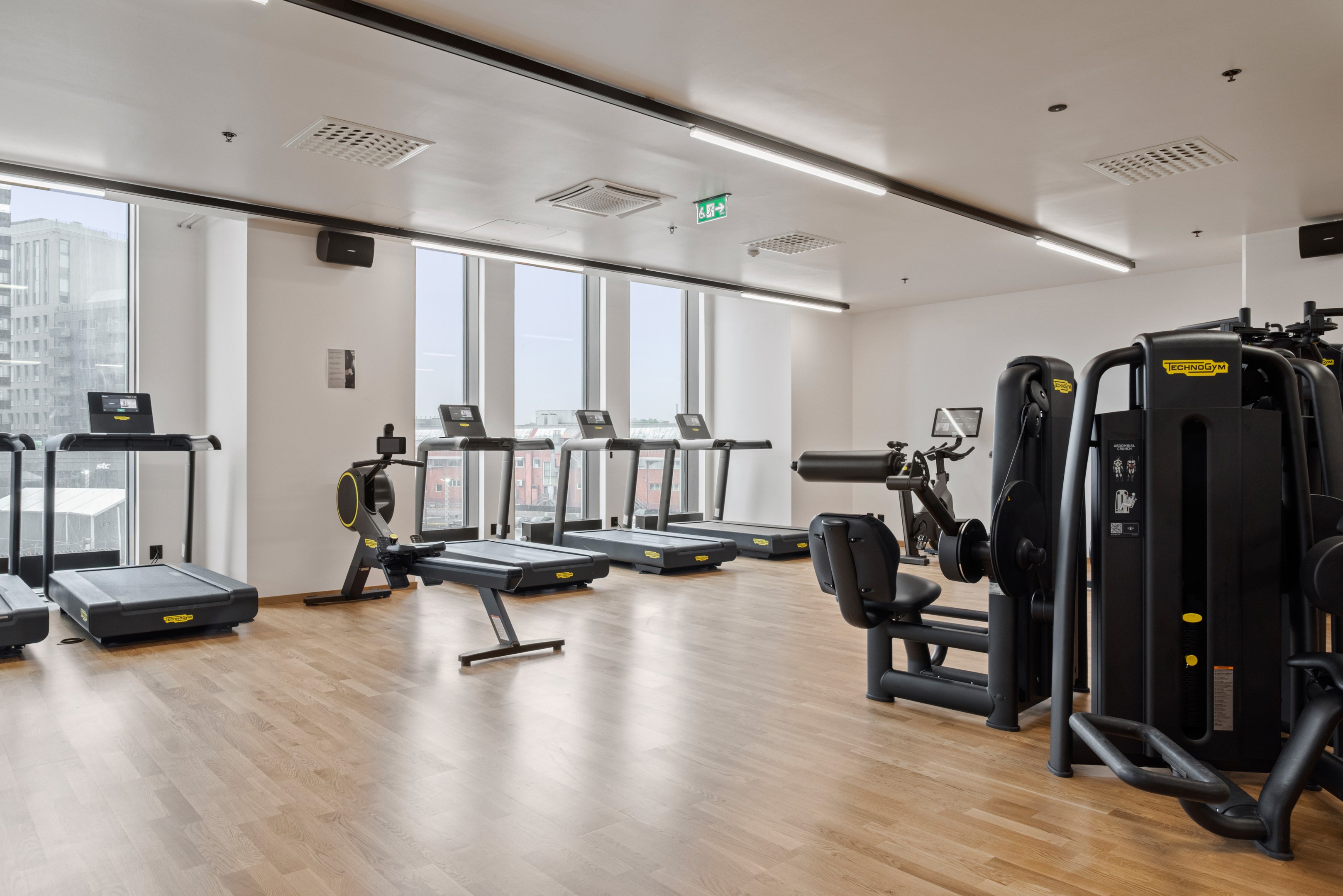 Entréplan: Lobby för Karlatornets boende med bemannad reception, eldstad, postrum, kylrum för privata matleveranser, skötselrum för hund (hundspa) samt biorum. Våning 1. Bibliotek/lounge, mötesrum, kaffestation samt spel och aktivitetsrum. Våning 2–3. Hotellets gym och SPA-avdelning med pool, bastu och relax. Kostnadsfri tillgång till gym för samtliga boende. Tillgång till spa-avdelning kostnadsfritt för boende i Skylevel och Penthouse, tillgång mot kostnad för boende i High Rise och Twisten. Våning 15. Gemensam takterrass med grönska och sittytor, ca 700 kvm. Bokningsbart kök som ansluter till terrassen utrustat med kyl & frys, ugn, mikrovågsugn, diskmaskin och plats för ca 25 sittande. Våning 38. Fitness och yoga med utsikt för boende i Skylevel och Penthouse. Våning 69. Restaurang och utsiktsplats öppen för alla att besöka mot inträdesavgift. Access sker genom paviljongen utanför tornet via hiss från garageplan.