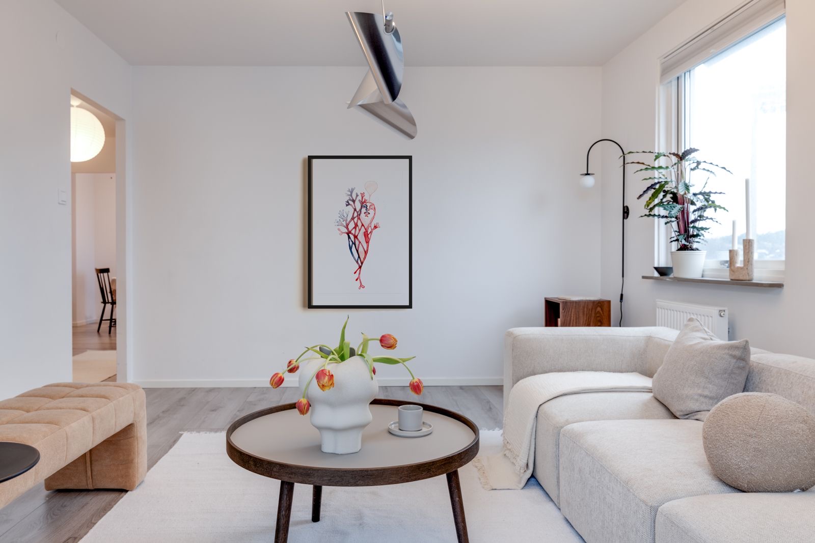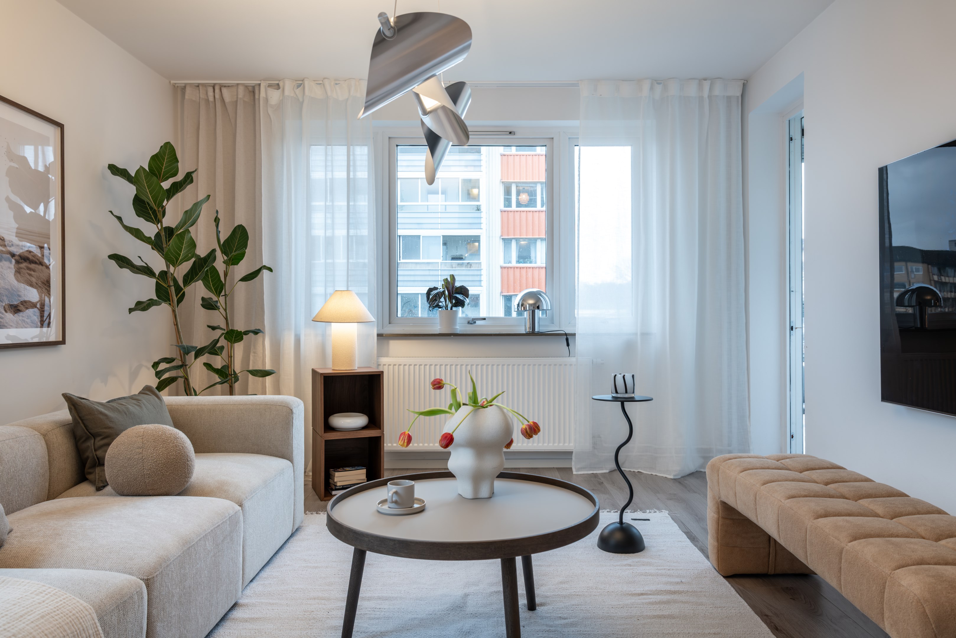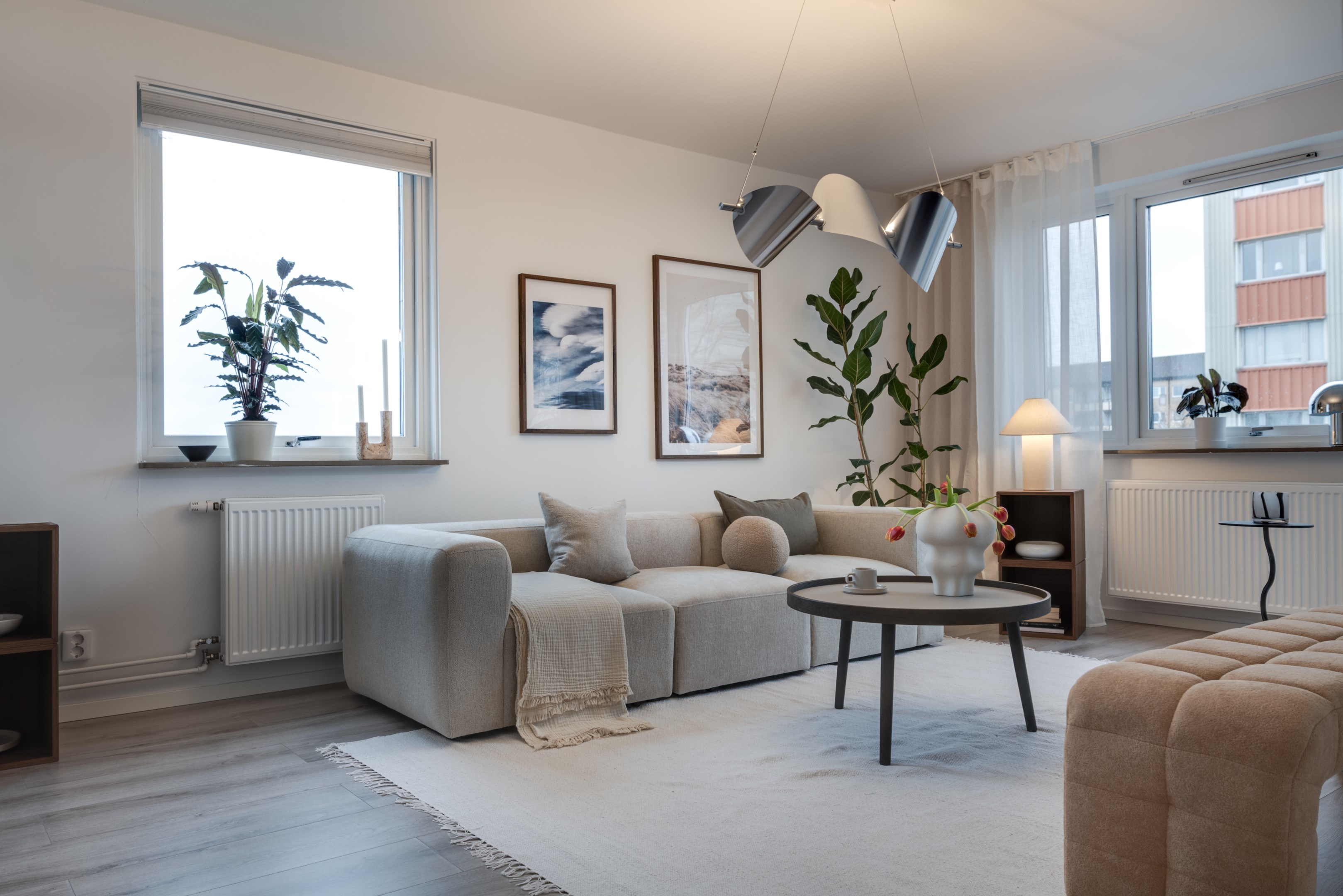 Den här trean erbjuder en väl genomtänkt disposition där varje yta utnyttjas till fullo. Det luftiga vardagsrummet är bostadens hjärta, med gott om plats för både soffhörna och matgrupp, en idealisk plats för såväl vardagsliv som umgänge. Från vardagsrummet når du den stora inglasade balkongen, en trivsam yta som förlänger säsongen och ger möjlighet till både avkoppling och praktisk förvaring. Köket är funktionellt utformat med bra arbetsytor och modern utrustning som gör det enkelt att laga mat och umgås samtidigt. Här finns även utrymme för ett rejält matbord, vilket skapar en naturlig mötesplats för måltider och samtal. De två sovrummen ligger avskilt från de sociala delarna och ger gott om plats för både vila och förvaring. Det större rummet rymmer en dubbelsäng och kompletterande möbler, medan det mindre sovrummet passar perfekt som barnrum, gästrum eller arbetsplats. Badrummet är mordent och välplanerat med helkaklade, ljusa väggar och mörkgrått klinkergolv. Ett fönster släpper in behagligt dagsljus och ger möjlighet till naturlig vädring, vilket skapar ett fräscht och luftigt intryck. Hela bostaden förmedlar en harmonisk och genomtänkt atmosfär där varje yta nyttjas effektivt. Här möts stil och funktion på ett sätt som passar både den mindre hushållsformen och den växande familjen. Området erbjuder ett bekvämt boende med närhet till både natur och stad. Här bor du med kort avstånd till kommunikationer, handel och restauranger, samtidigt som Ramberget och Keillers Park bjuder på vacker natur och fantastiska utsikter. Innerstaden ligger bara några minuter bort och är lätt att nå både med spårvagn, buss eller cykel över Hisingsbron. De goda kommunikationerna gör det enkelt att ta sig till city för arbete, studier eller nöjen – samtidigt som du bor lugnt och naturnära. Kontakta ansvarig mäklare redan idag för mer information!