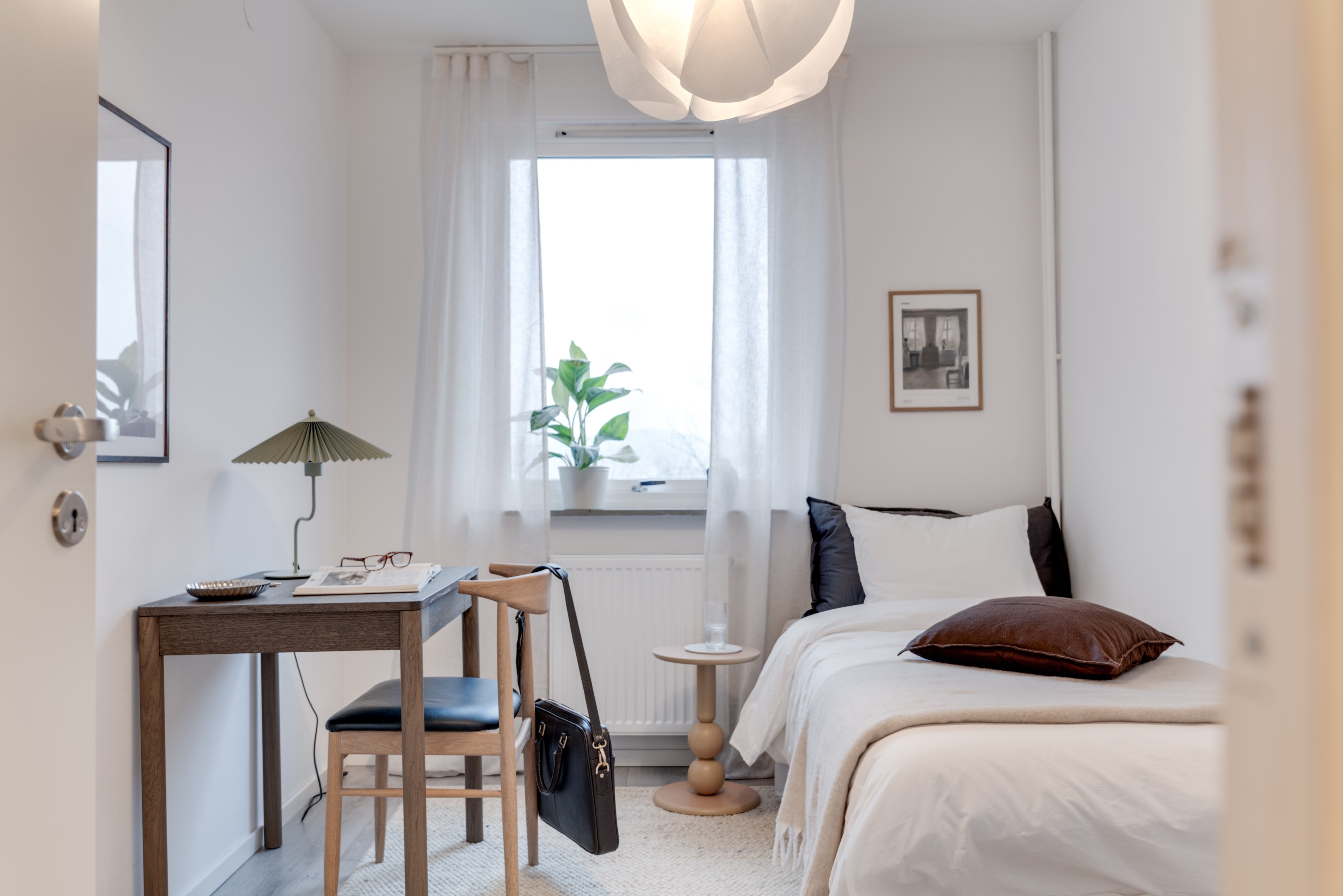 Det andra sovrummet har en praktisk utformning som gör det enkelt att anpassa efter behov. Rummet är välbehagligt och den genomtänkta planlösningen gör det lätt att skapa en funktionell och välorganiserad yta oavsett användningsområde.